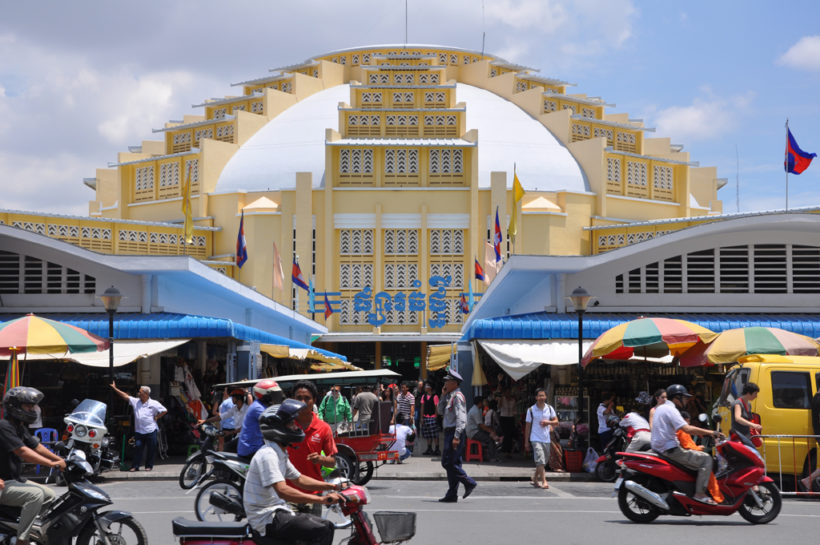 La ville n’a rien d’extraordinaire : un palais royal (mois beau que celui de Bangkok), quelques beaux bâtiments coloniaux (en particulier le marché). La visite du lycée S21 (Tuol Sleng) est tellement bouleversante que je n’ai pas pris de photos. Par contre, le spectacle de la rue est fascinant : les gens sourient malgré le vacarme (passage incessant de tuk-tuk, de motos -peu d’autos). Et la promenade le long de la rivière est agréable. Le FCC (foreign club correspondant), avec ses photos de la guerre du Viet Nam, sera notre QG. Dans ses murs, j’avais l’impression d’être un correspondant de Paris Match en 1975 ! (j’ai appris, bien plus tard, qu’il s’agissait d’une reconstitution récente !). Enfin excellent souvenir d’un repas dans l’ancienne banque Indosuez, devenue un restaurant de luxe.