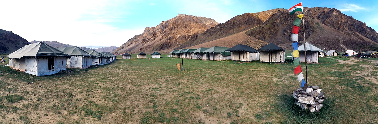 Après un repas simple, une bonne nuit (malgré l’altitude), le réveil est un vrai enchantement : les environs du camps sont superbes. On reprend la route en direction de Keylong. Progressivement, les paysages deviennent plus verdoyants. L’étape à Keylong, où on arrive vers midi après 3 h de trajet environ, permet d’une part de passer (le lendemain) le fameux Rohtang Pass le matin, d’autre part de faire une agréable ballade dans les environs très verdoyants de Keylong, bourgade sans charme particulier mais entourée de superbes montagnes enneigées